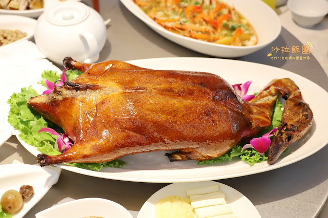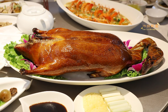 使用頂級櫻桃鴨製作,搭配多種特製佐料,醃漬後再經過風乾,利用慢火瓜爐燒烤,烤至焦糖般完美色澤,他的鴨皮特別脆