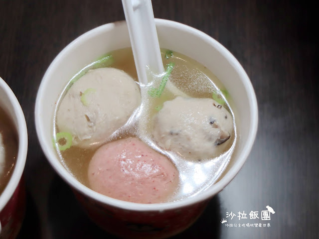 貢丸湯是綜合的,一碗三顆,原味貢丸、紅麴貢丸、香菇貢丸