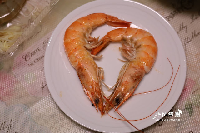 下鍋後小可姊姊說,剛才在盒子裡還不覺得大,放進鍋子一打橫,比例馬上看出來,每條蝦送到後還直挺挺,非常新鮮