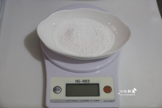 樹薯粉40公克、砂糖30公克、鮮奶400C.C,可用以用電子秤量