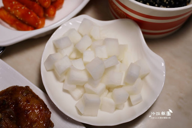吃韓式炸雞一定要有醃漬蘿蔔的,吃炸雞配上蘿蔔一點都不膩口
