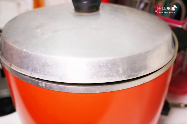 直接放進電鍋,外鍋不要放水,只要插上插頭,不要按下開關、不要按下開關、不要按下開關,就讓他靜靜待在裡面即可