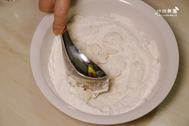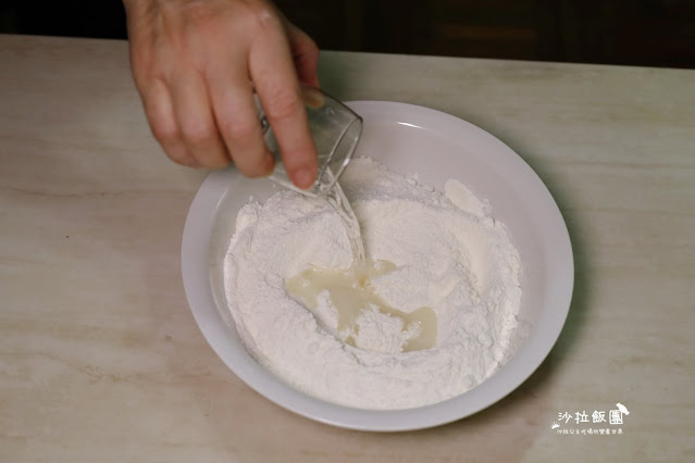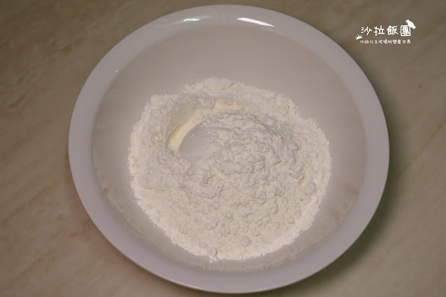將鹽和麵粉攪拌均勻,麵粉隨便高、中、低筋都可以,取代早年的紅土