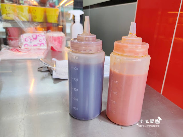 醬料在櫃檯上自取,有醬油膏和辣醬,我個人目前是不敢用共用的醬料,不過小可姊姊很勇,還是敢拿起來用,每次都有加