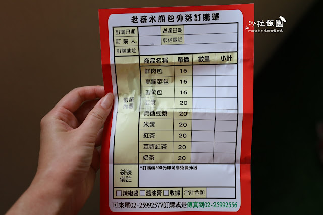 『老蔡水煎包』有外送服務,滿500元可免費外送,請提早訂購