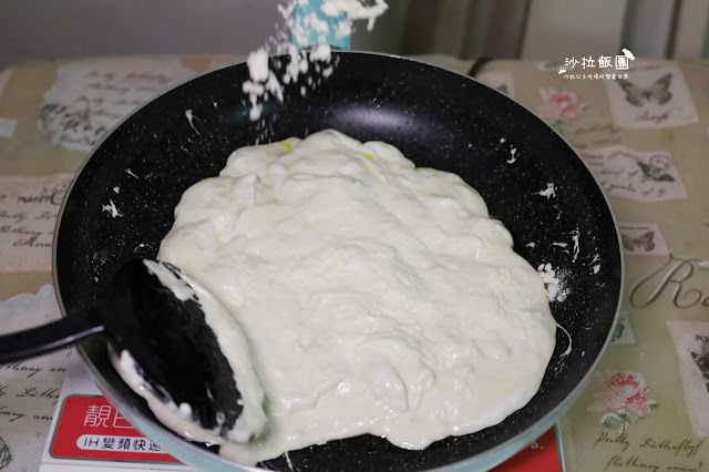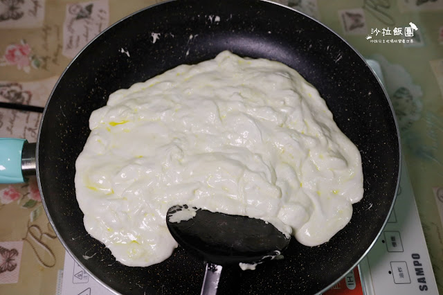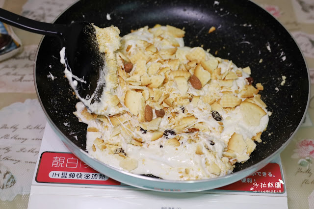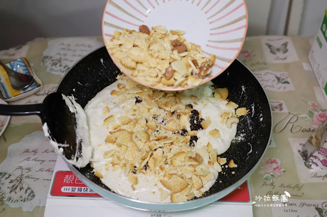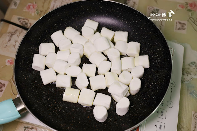 融化棉花糖有些人會隔水加熱,我比較懶,直接倒入不沾鍋