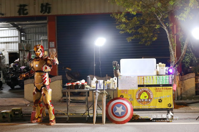 第一攤我就遇上了鋼鐵人賣的『微笑雞蛋糕』,我從對面拍攝,老闆發現後還定格讓我拍,真的是很有趣,大熱天他穿這樣賣雞蛋糕,辛苦了