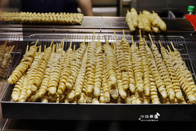 這幾個連續的攤子我最有興趣的是炸麻糬,服務的還是一個看起來像是小一的弟弟,隔壁的拔絲地瓜可能是他的家人吧