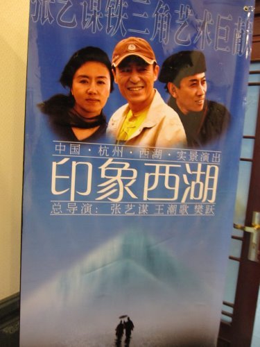 到江南遊的第四天晚上我們又回到杭州,在西湖邊用完晚餐後,就到西湖邊看印象西湖,印象西湖之前有聽我們客人說還蠻值得看的,他是愛桂林看的,把舞台架在湖面,然後有2.300人在上面表演